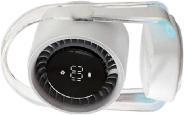 The rechargeable cooling fan boasts innovative double axises oscillation systems (up/down & left/right), builts in blue ambiances lighting, and a intelligent LED display showing real time setting, all housed in durability ABS/metal construction with 3500mAh battery for 8hour cordless operate