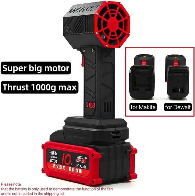 Rechargeable Battery& Digital Display:Powered by a rechargeable , compatible with 16.8-21V / rechargeable batteries(according to your selection). The built-in digital display screen allows you to view the battery's voltage in real . The higher the voltage, the higher the battery's voltage power output and the higher the wind power.