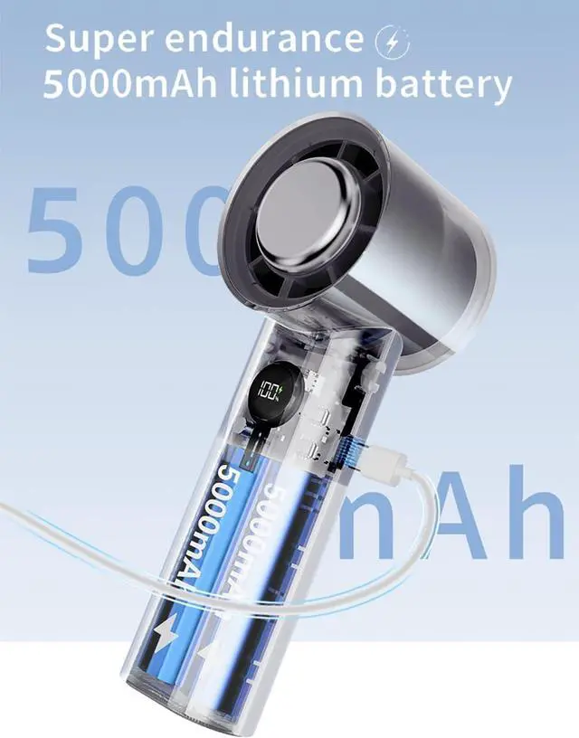 Customized Wind Speed By Yourself: Travel fan introduces a high-speed hair dryer similar motor, easy to adjust wind speed in 5 gears, meets your all needs. Turbocharged wind guide system, strong wind gathering, high-speed airflow gushing out, bringing incredible cooling experience, cooling speed increased by more than 3 times, great gift choice for travel