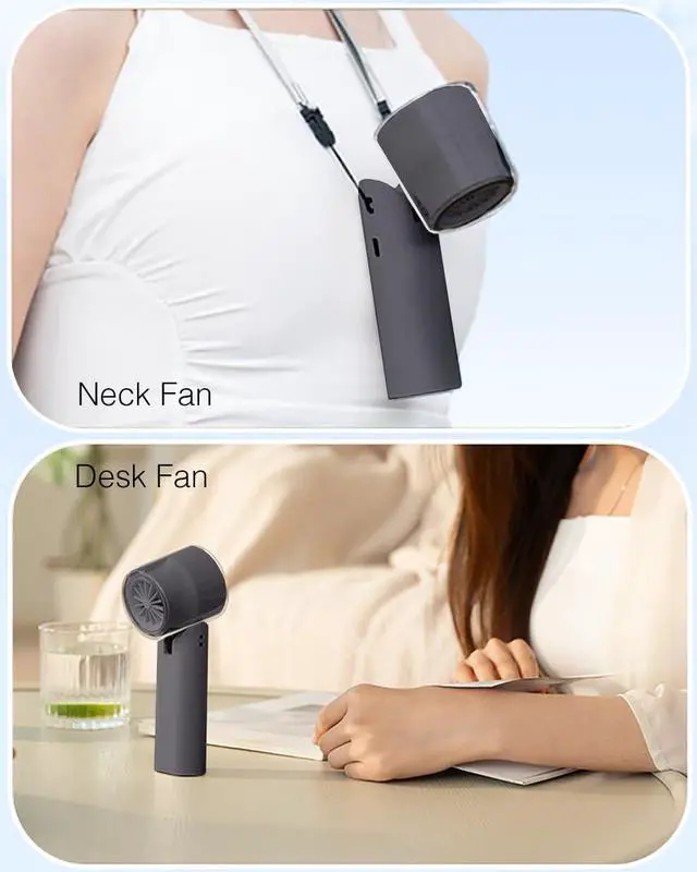 KALAMAN 4-in-1 Portable Fan: Discover the ultimate convenience with our innovative handheld personal fan, designed to offer dual functionality. Seamlessly switch between a portable handheld fan and a practical desk fan to suit your needs. This mini fan comes equipped with a lanyard, allowing you to hang it on the neck for hands-free personal cooling. Super compact, lightweight, and easy to carry, its the perfect companion for work, walks, travel, makeup sessions, or shopping