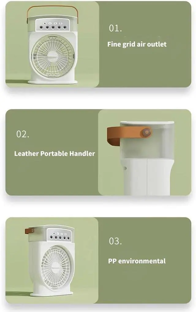 rapid cooling with the 5 hole misting fan, delivering a temperature drop and cold particles for whole room comfort in second