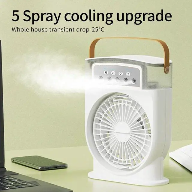 rapid cooling with the 5 hole misting fan, delivering a temperature drop and cold particles for whole room comfort in second