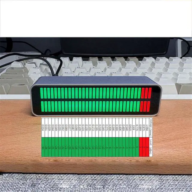 AK_DB32D_PRO stereo LED levels meter delivers realtime sound levels with high sensitivity sensorings and advanceds signals detection for precise dynamic ranges visualization in professional setups