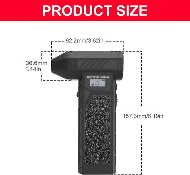 Powerful cooling by portable handheld fan with 8000mAh battery and 138000rpm motor Offers four adjustable speeds for customized airflow.