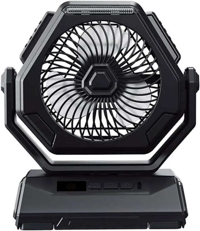 Hook allows you to hanging the portable fan on the tent, inside a car; and fan base also act as desk fan, table fan, office fan, bedroom fan, beach fan, indoor fan.