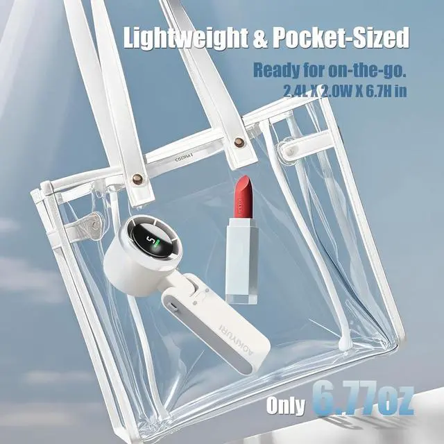 Smart LED Display Turbo Handheld Fan Real-Time Power Monitoring - HD screen shows exact battery % & speed level (1-5) Low-Power Alert - Flashing reminder when charge drops below 10% Travel Essential - Fits in cup holders & backpacks (6.8oz)