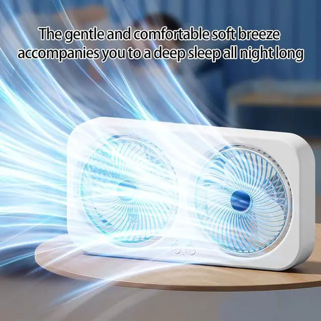 powerful cooling with this double head desk fan featuring rotating for directional airflows, offering flexible wall mounted or freestanding placement in any room