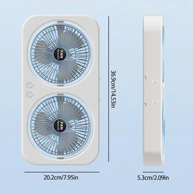 Equipped with USB rechargeability and innovative hanging design, this lightweight fan ensures power option and installation in tents, dorm room, or gym space