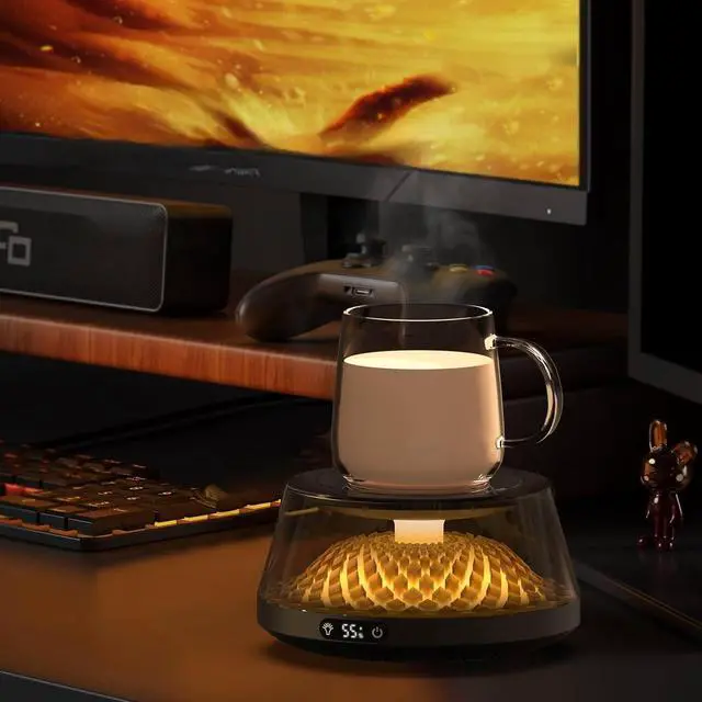 The light-up warming coaster features switchable multicolored lights during heating. Its soft, beautiful hues transform the coaster from a mere tool into a tabletop artwork, enhancing your enjoyment