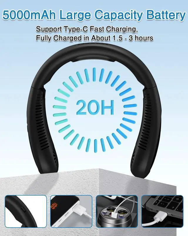 (Neck Air Conditioner & Semi-Automatic Cooling) This neck fan is indispensable for hot weather. The dual cooling plate and fan construction reduces body temperature up to 14 degrees Celsius. The wind from the fan and the cooling plate hits your neck, giving you the cooling feeling of cooling cans against your skin, and keeping you comfortable even in hot weather. 1S Rapid Cooling & 3