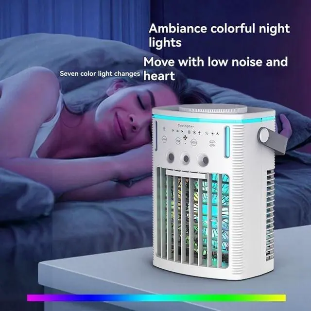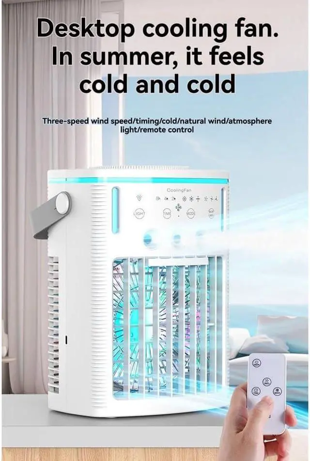 Desktop humidifying cold fan, three heads, strong humidification, remote control, quick operation.