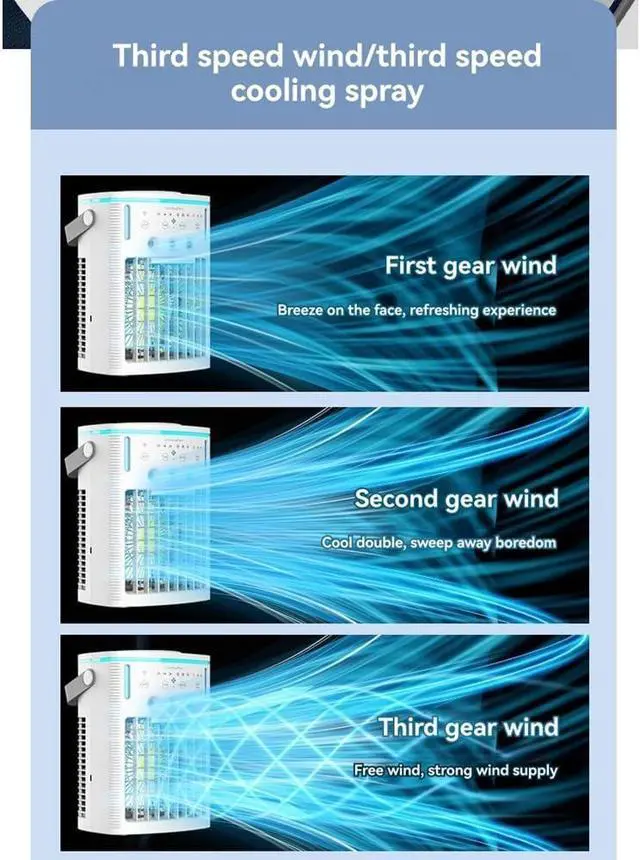 120° ice mist strong , comfortable circulation and fresh air, strong airflow to accelerate room ventilation.