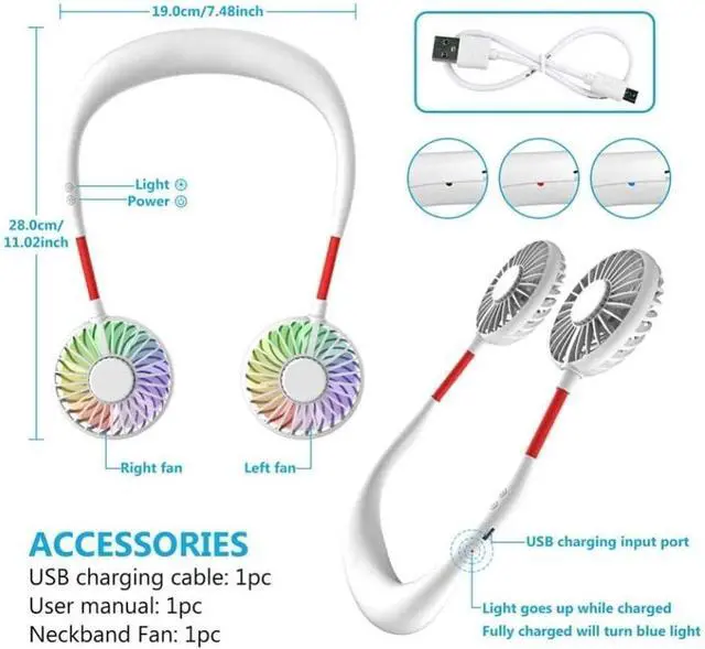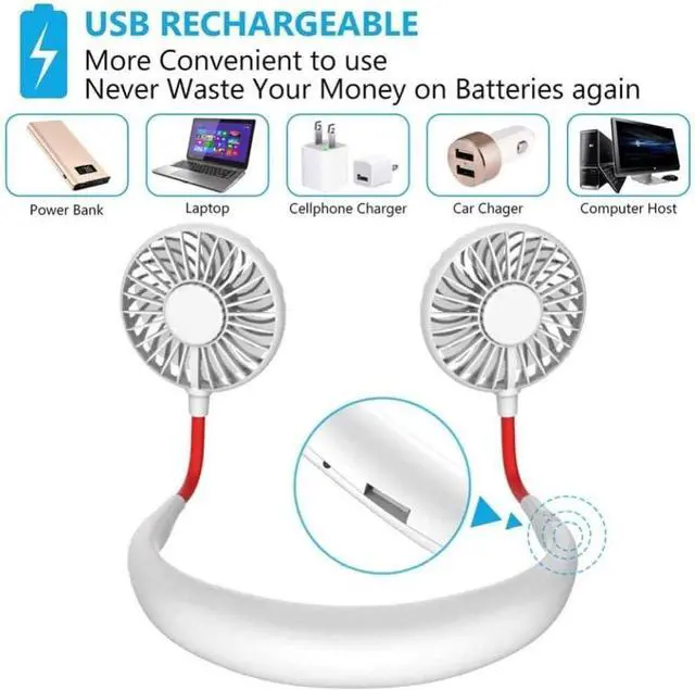 Fan Cooler Handheld Fan Wearable Hanging Neck Mini Fan USB Hands-free Fan 3 Speed Adjustable Ai (Fan)