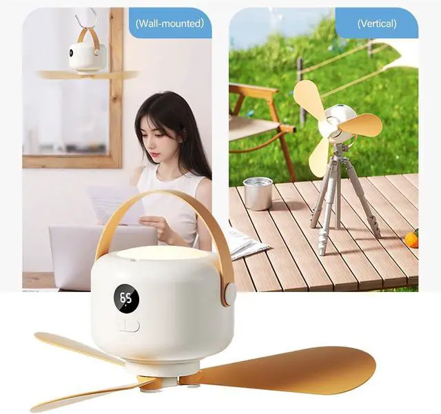 This fan has 3 quiet leaves adjustable 5 speeds, 3 adjustable brightness, built-in lighting, suitable for indoor and outdoor use