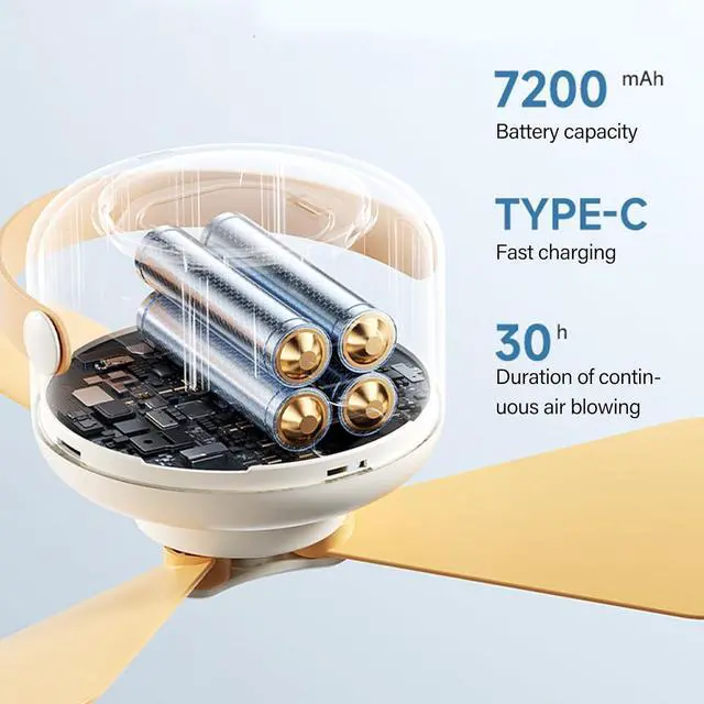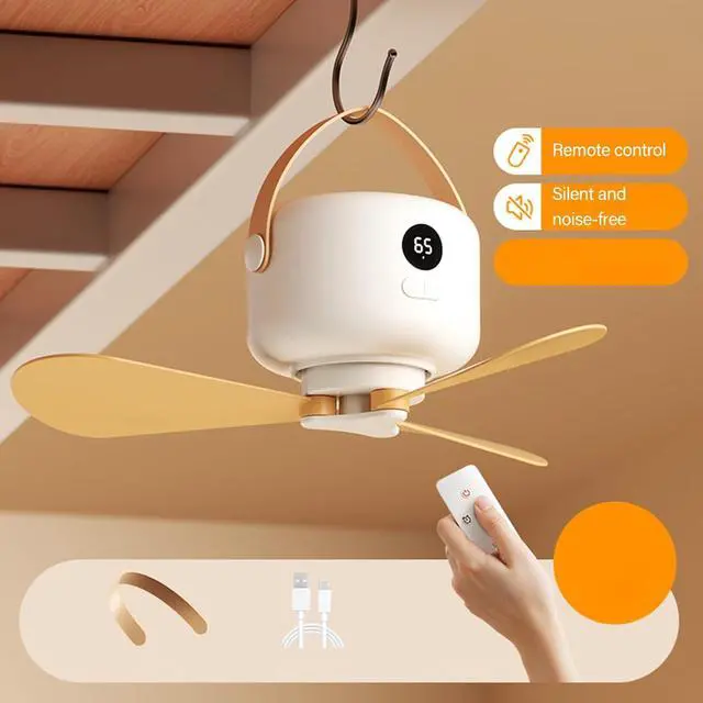 Remote Charging Small Ceiling Fan USB Outdoor Night Camping Dorm Fan, 5 Speed Powerful, Long Battery Life