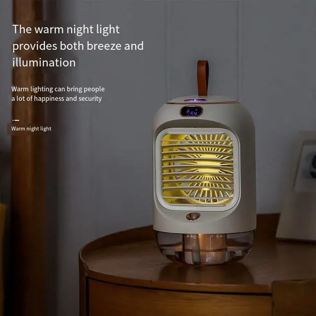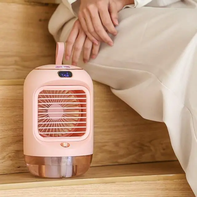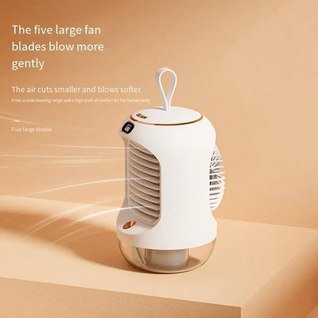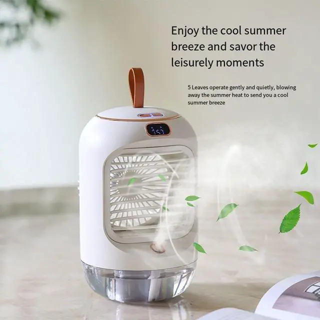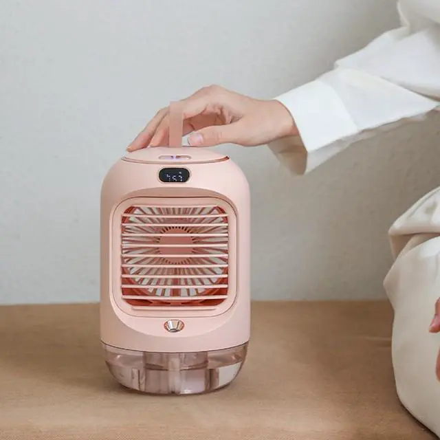 [SPACE-SAVING DESIGN] This USB portable air cooler boasts a mini desktop design that fits seamlessly on any desk or tabletop, perfect for cramped workspaces or cozy living areas.