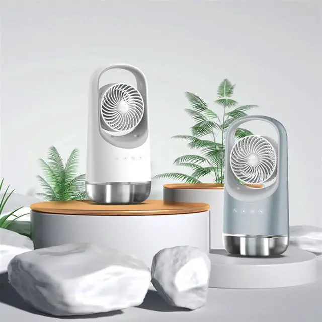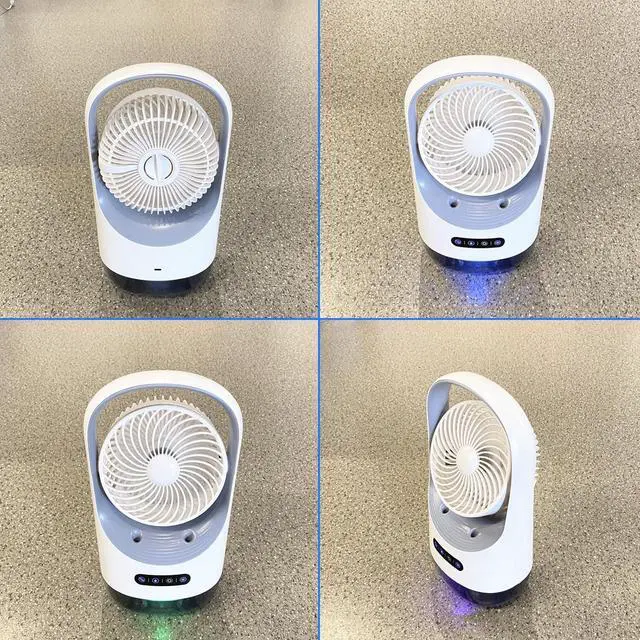 Stay cooling anywheres with this 4000mah USB rechargeable miniature cooling fan featuring rotating airflows and humidifying mists for enhances air comfort