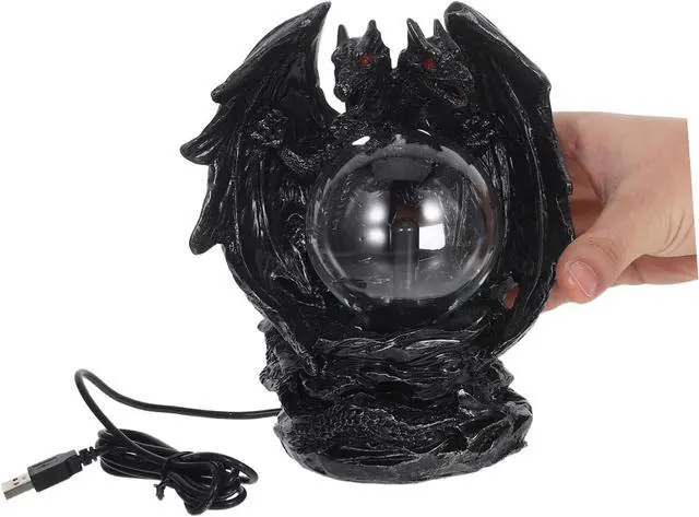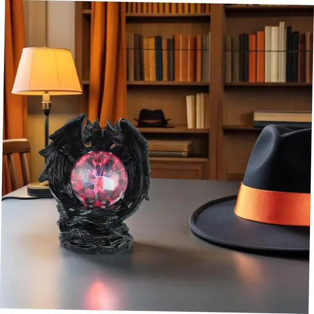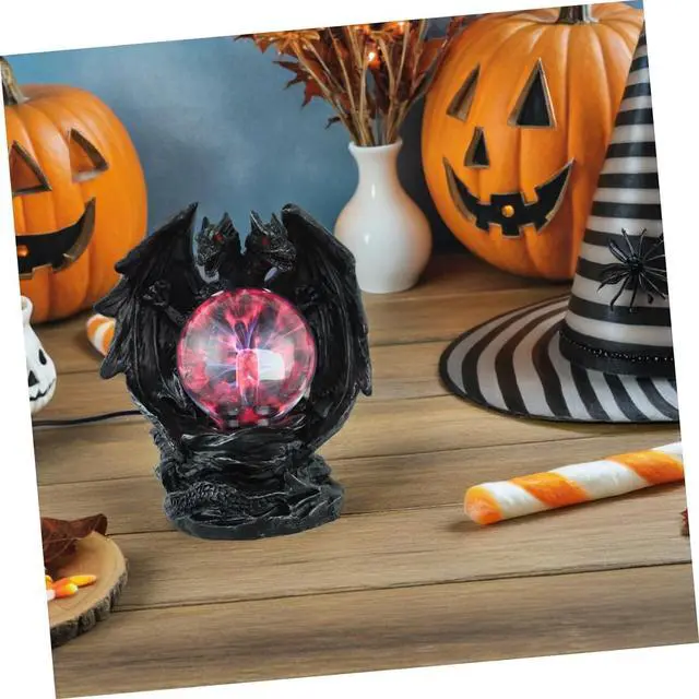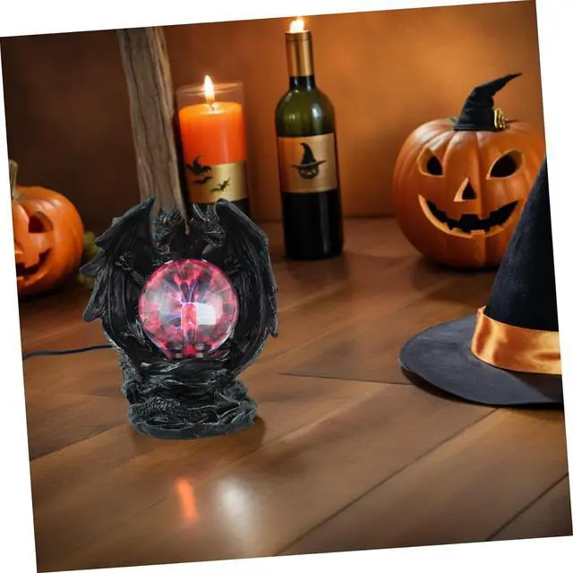Halloween atmosphere enhancer: the spooky dragon design and glowing plasma ball create a perfect centerpiece for halloween parties, adding a touch of gothic charm to your decor,dragon statue home decor resin,plasma globe