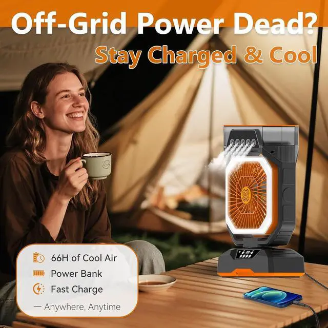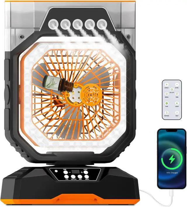 Power Bank Function with Charging Tip: Built-in 27,000mAh rechargeable battery offers long-lasting performance and fast USB-C charging. It also serves as a power bank to charge mobile devices. Note: For stable power output and battery preservation, it's recommended to avoid using misting, lighting, or oscillation functions while charging external devices.