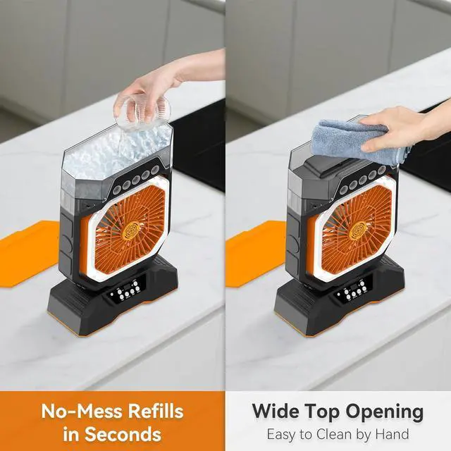 Fine Mist Cooling with Easy-Access Tank: Customize mist intensity using 1 to 5 active spray outlets and programmable mist intervals. The integrated 560ml top-fill water tank features a wide opening, allowing for easy refills and cleaning without the need for removal. Misting runs for 812 hours depending on settings