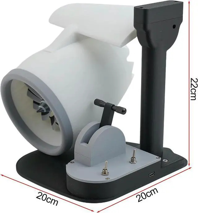[Compact and Efficient Design]: This portable USB fan features a sleek desktop size (20x20x22cm) with a jet engine-inspired look, making it a visually striking addition for creative setups. Designed for applications such as model aircraft displays, personal cooling, or integration with humidifier systems, its compact structure delivers strong airflow while occupying minimal spaceperfect for desks, shelves, or DIY projects.