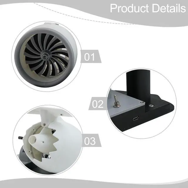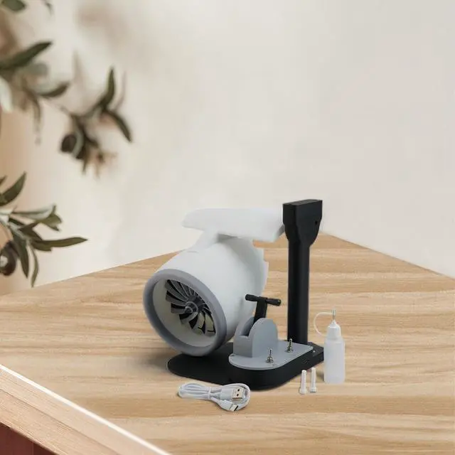 [Versatile Functional Applications]: More than just a fan, it serves multiple roleswith potential use in educational science models, desktop humidifiers, or as a dynamic component in hobbyist turbine replicas. Its combination of blue LED lighting and realistic engine aesthetics adds visual appeal while functioning efficiently in creative, decorative, or utility-focused settings.