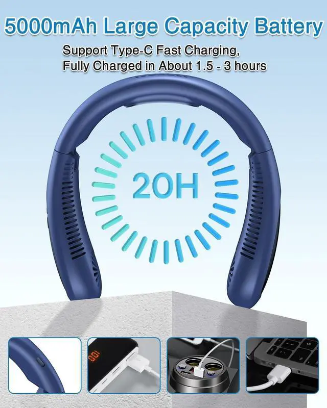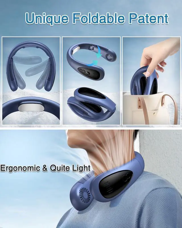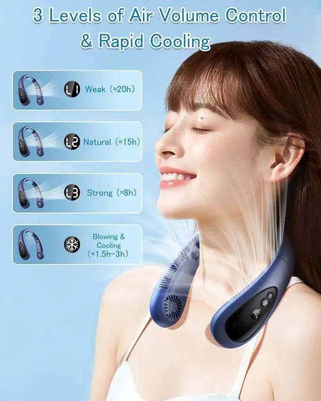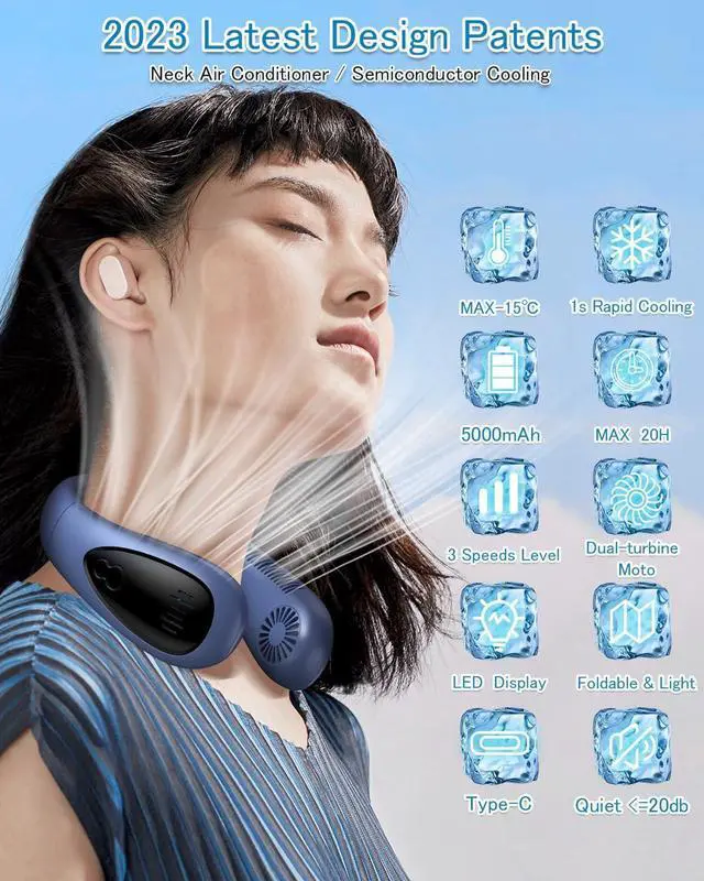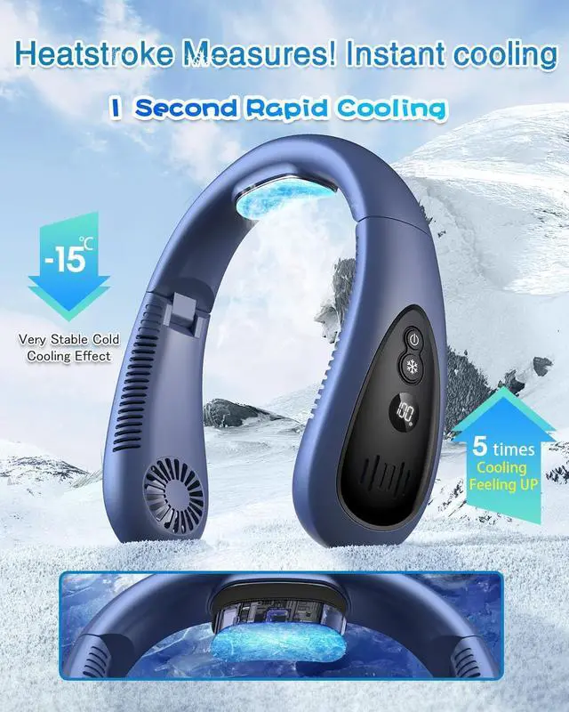 (Neck Air Conditioner & Semi-Automatic Cooling) This neck fan is indispensable for hot weather. The dual cooling plate and fan construction reduces body temperature up to 14 degrees Celsius. The wind from the fan and the cooling plate hits your neck, giving you the cooling feeling of cooling cans against your skin, and keeping you comfortable even in hot weather. 1S Rapid Cooling & 3
