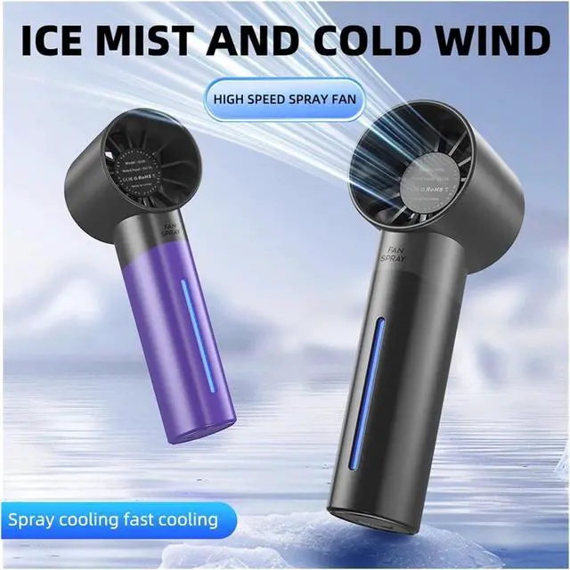 Enjoy refreshing mist with handheld fan to stay cool on hot summer days