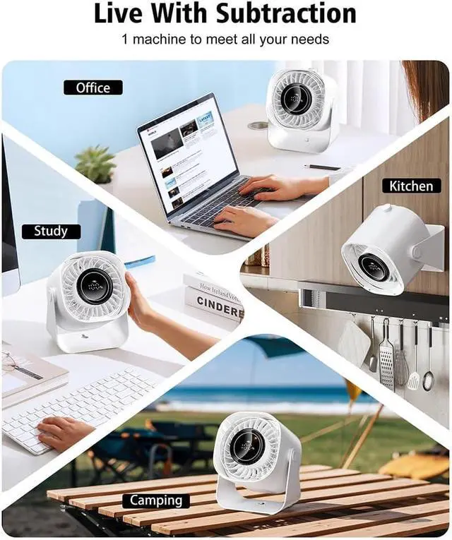 [SPACE SAVING AND COOLING FAN]:The quiet small desktop fan is easy to move around and carry, and the powerful gusts of air circulate throughout the room to keep it cool. Takes up little space, conveniently placed on desks, nightstands, office desks