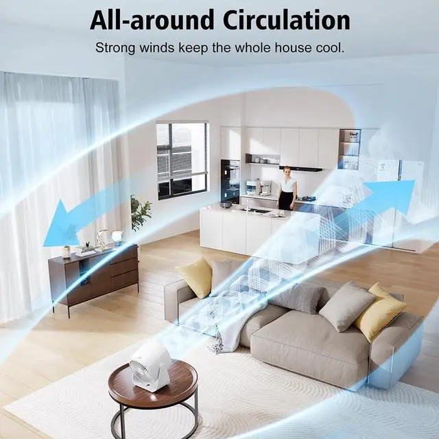 [POWERFUL AIR CIRCULATION]Powerful Air Circulation:Portable fan can effectively circulate indoor air, make indoor air more circulation , wide blowing, long-distance air delivery. The whole house is cool all day.