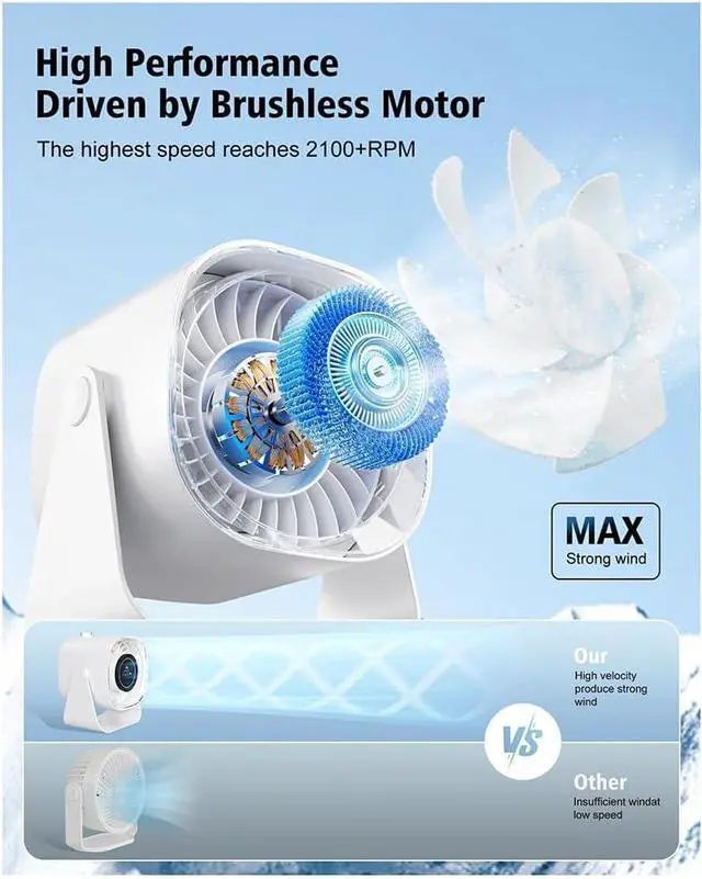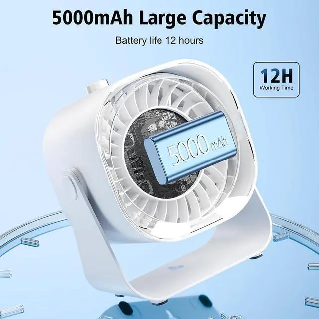 [LED DISPLAY AND EXTRA LONG BATTERY LIFE]:5000mAL capacity is adjustable and can work at least 12 hours at the lowest speed.Type-C port fast charging design can run while plugged in to charge, suitable for office, travel, outdoor and sleep use. Large LED digital display shows wind speed and power level with an accuracy of up to 1%. No more guessing if you need to charge or not.