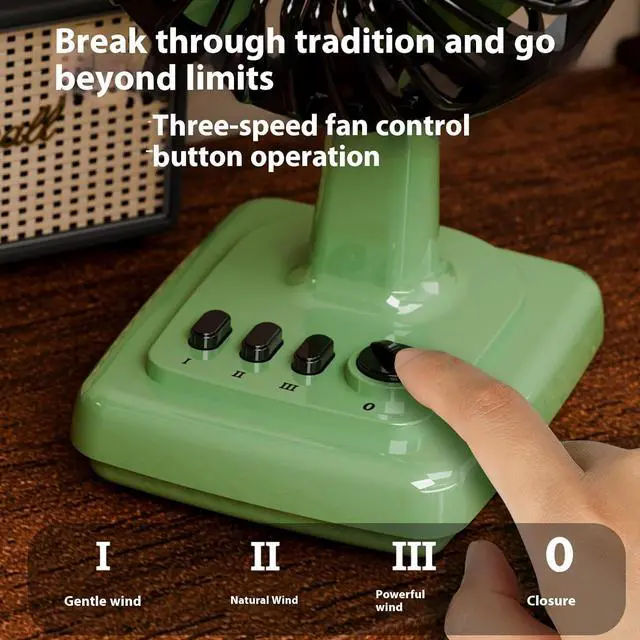 This small fan adopts retro nostalgic button and smooth process, metal alloy and well-polished, the color is warm and full.