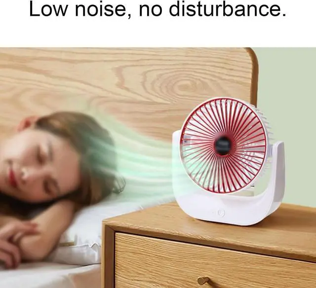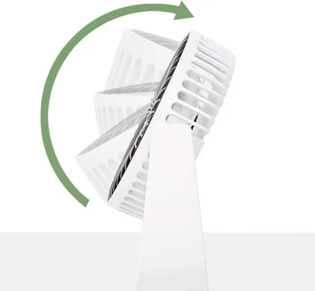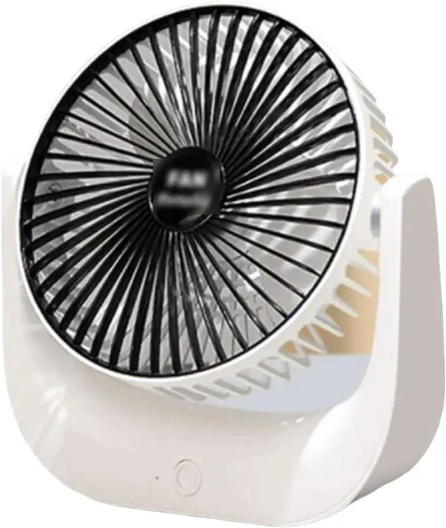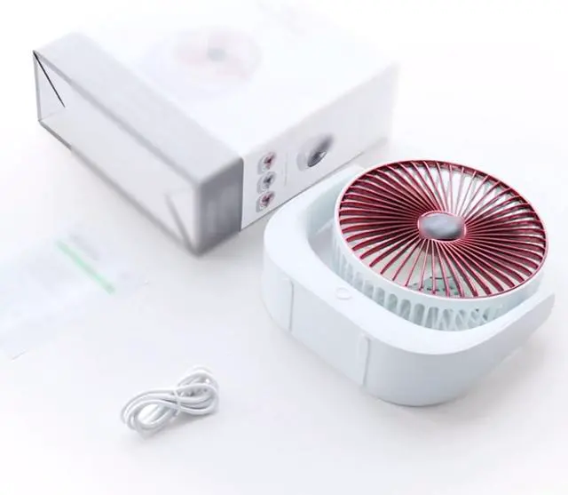 This desktop fan is made of plastic shell and metal, with built-in battery and USB data interface.