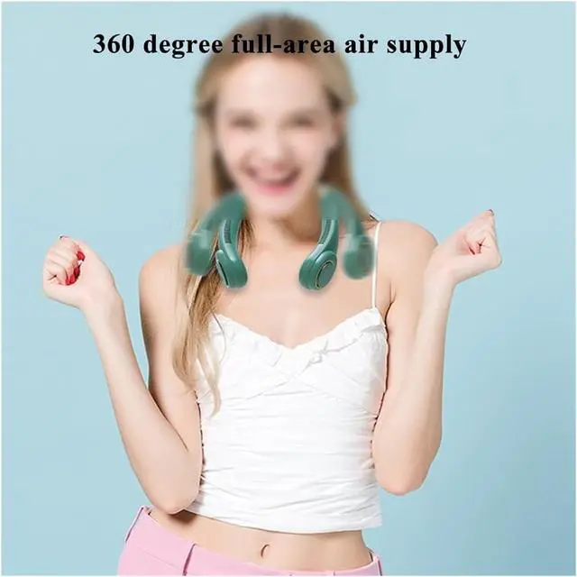 Perfect for both indoor and outdoor use, the personal fan generates natural wind to keep you cool while reading, exercising, laying in a row or traveling. It's your helper when it's hot. Compared to the old section neck fan that only could blow up the side face, this latest leafless neck fan has more air vents to provide enough upward air flow and let air flow all around the neck to the face to keep you cool