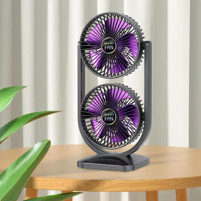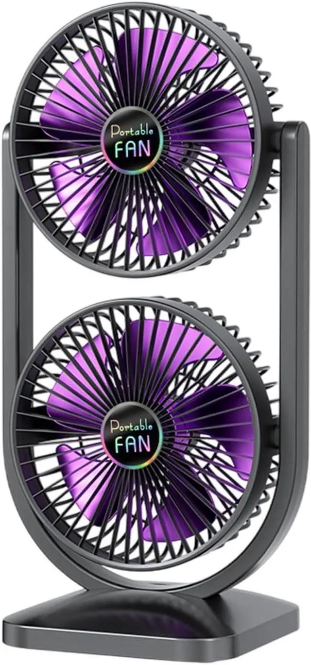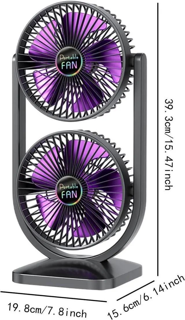 2 Adjustable Heads: This fan features a unique design with double rotating heads, allowing each fan to tilt up to 270 for precisly airflowing direction. Say goodbye to hot summer days with targeted cooling