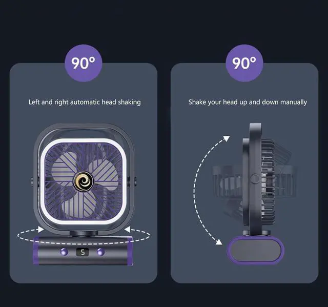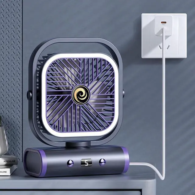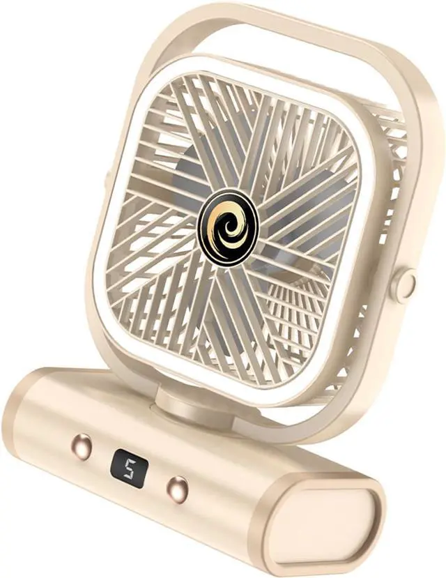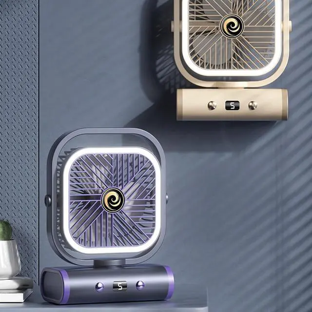 USB Rechargeable Desk Fan 5 Speed Quiet With LED Night Light For Office Desktop Home And Travel Use Light Weight