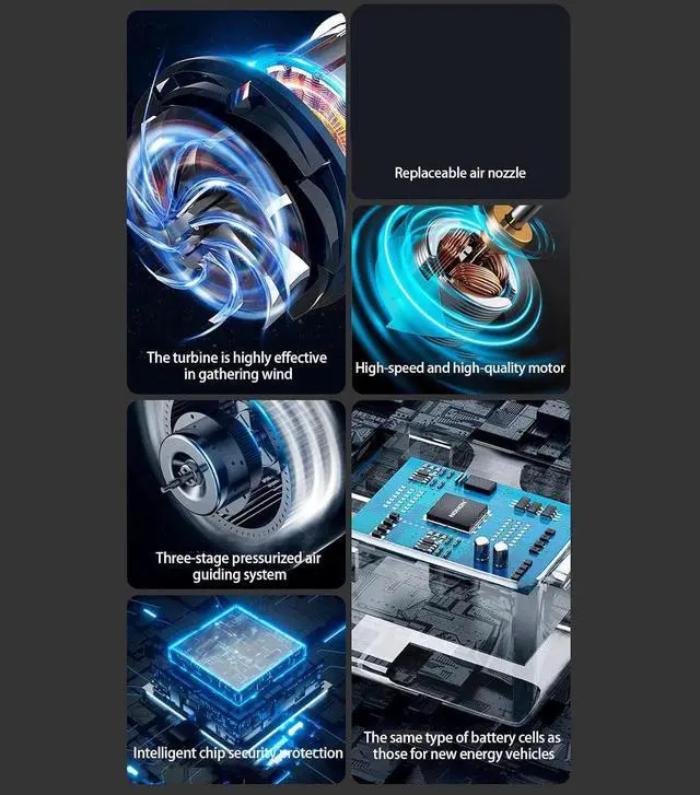 powerful cooling with Handheld Fan featuring high speed 98000RPM motor, 6 adjustable speed for customized airflows