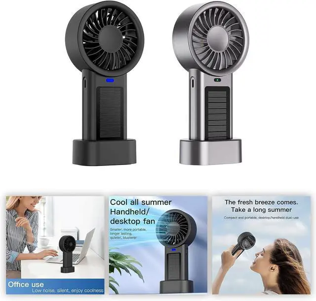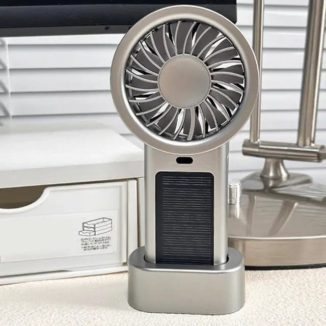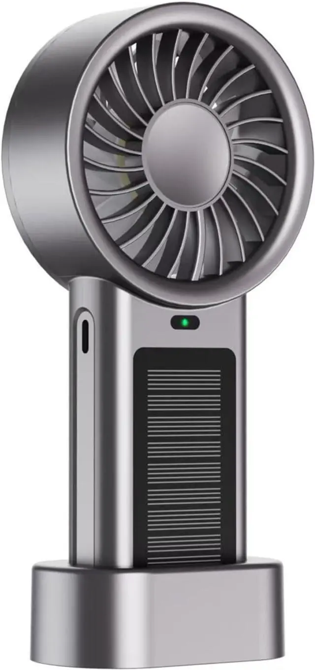 Keep cool with this solar-powered handheld fan featuring double charging (solar/USB), 5 adjustable speeds, and impressive 16 hours power with a 1200mAh battery for outdoor and daily commuting