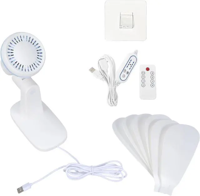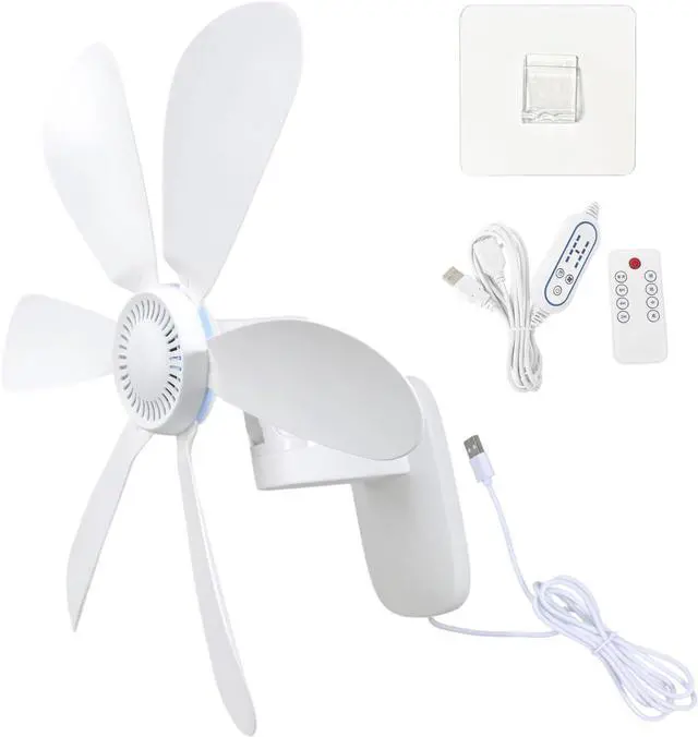 USB power wall mounted fan with remote control and 4 speed setting delivers space saving cooling through 6 optimized leaves, featuring 2h/4h/8h timer for management areas