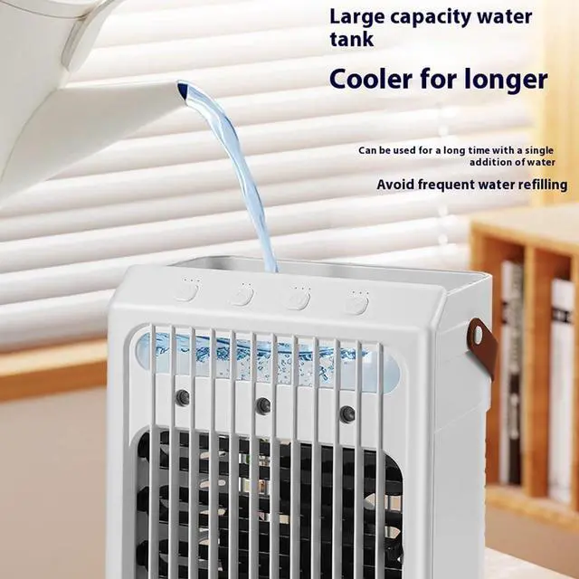 comfort with the portable air conditioning fan, device that combines cooling, humidifying, and misting functions to create a refreshing indoor environment