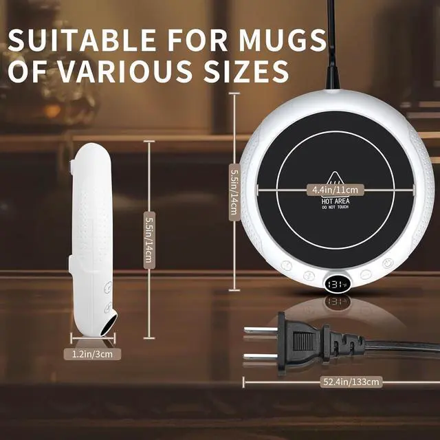 Large 4.4" Heating Panel: With an expansive 11cm (4.4-inch) heating surface, our coffee warmer easily accommodates various candle warmers and cup sizes, including glass, stainless steel, ceramic, and even milk cartons. Its universal appeal makes it a great choice for christmas gifts for women and functional mens gifts