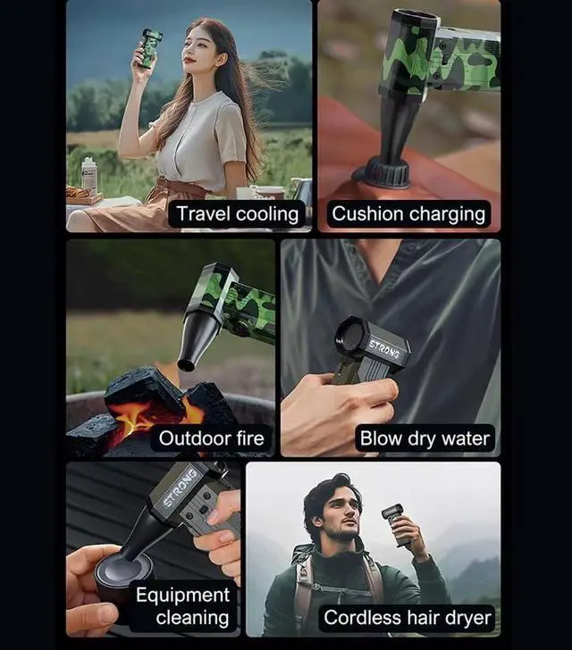 4. Usage: Air cushion blowing and suction, computer equipment cleaning, industrial dust blowing, charcoal burning to support combustion, car blowing and snow blowing, film studio and wind making, drying pets, and many other uses.
