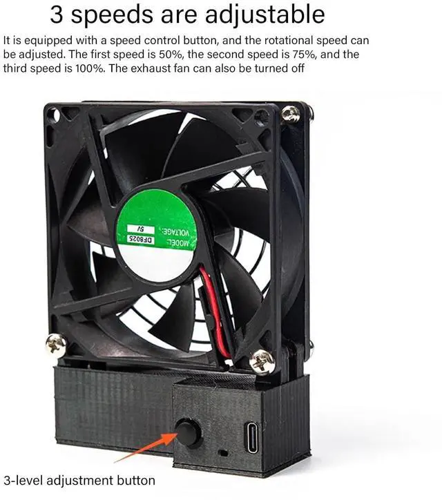 powerful ventilation with this USB rechargeable 3 speed exhaust fan featuring double ducts and a 2200RPM motor, ideal for printers, soldering stations, and kitchen fumes extraction.
