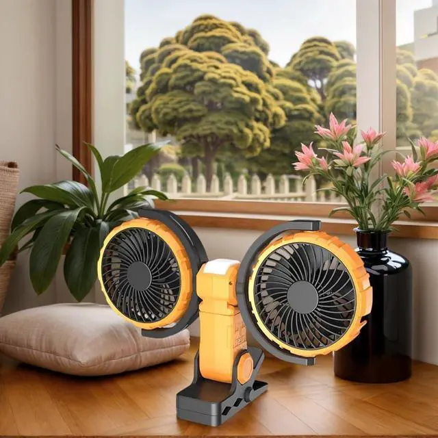 Introducing double Head Desk Fan, featuring independent 360 degree rotating heads and USB flexibility for wide area cooling in offices or homes.