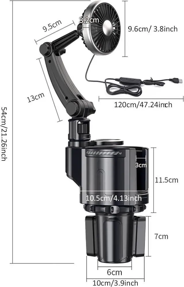 Flexible Adaptation to Various Cups: The fan is equipped with an innovative expandable base design that allows different sized cups to be stably installed in car cup holders even on roads the Car Cup Fan maintains stability ensuring and reliability during your drive