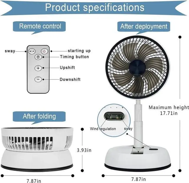2.Lightweight and compact design makes this electric fan easy to carry and store, perfect for travel, camping, or daily use