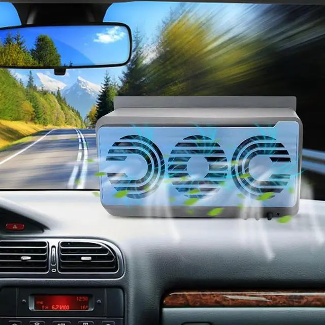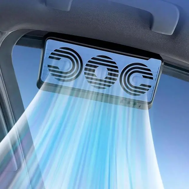 This fan features a double duct and motor designs powered by solar energy and USB, ensuring efficient ventilation and a fresher vehicle environment