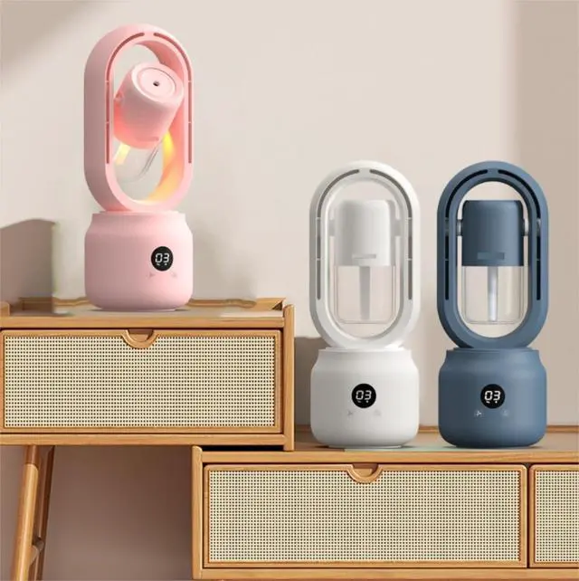 Bladeless Fan Desktop Humidifier with 3 speeds Adjustable: mist humidifier Cooling fan 3 speeds adjustable, meet your different needs.