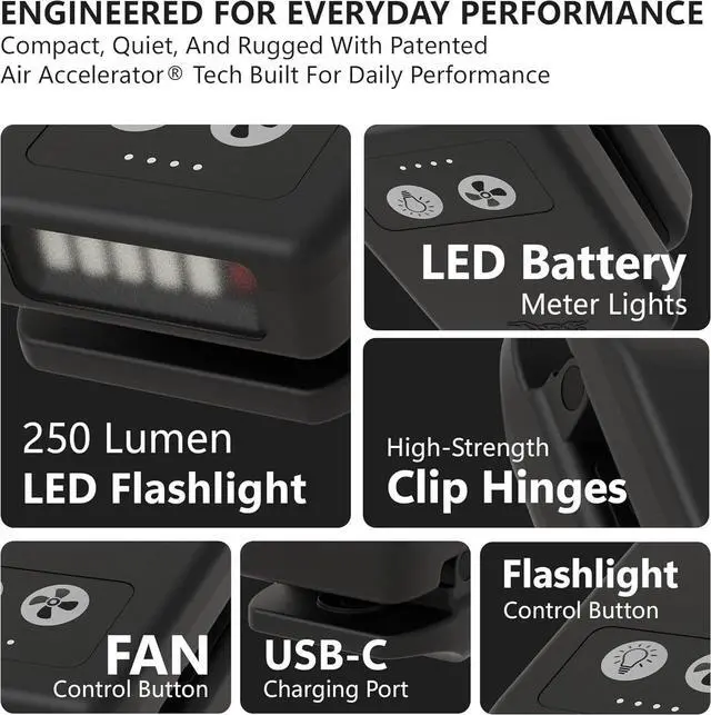 Rugged, lightweight, water-resistant design; easily clips onto clothing or headwear for hands-free cooling