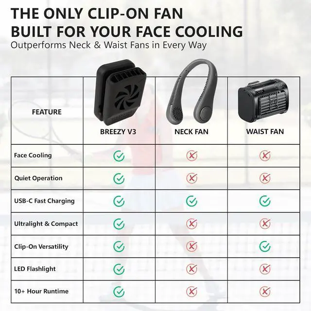 Delivers up to 11 MPH airflow to keep you cool, even in hot & humid conditions